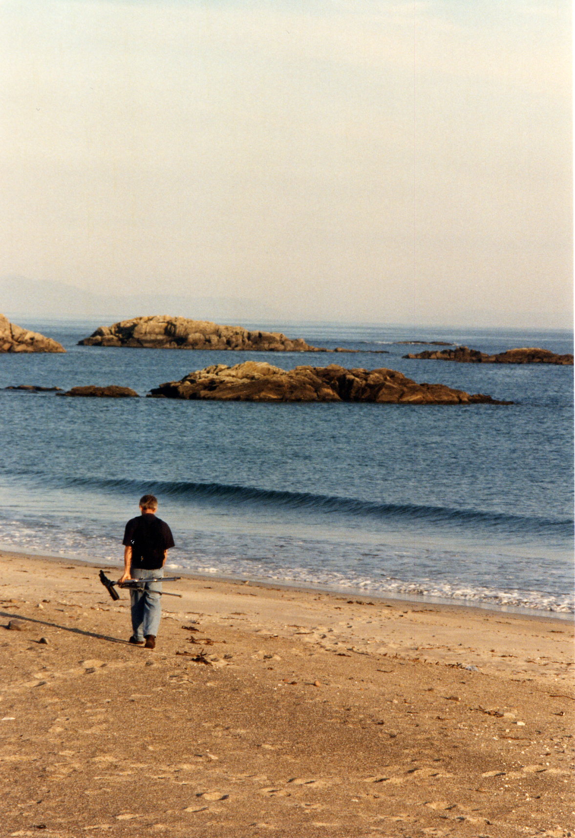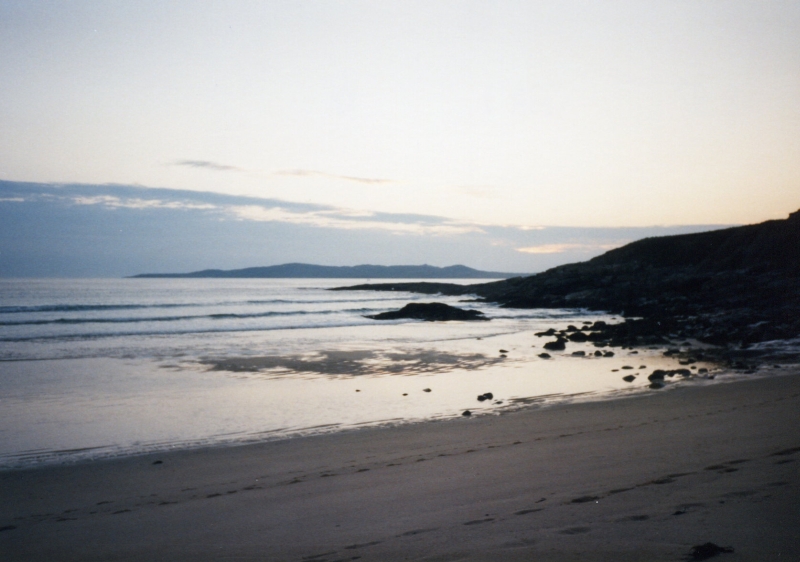 Nach dem Abendessen fahren wir noch ein Stück die Küste entlang. Sie ist so traumhaft, daß es uns bestimmt niemand glauben wird. Die Photos auf den Postkarten haben doch nicht gelogen. Gegen halb zehn machen wir einen Spaziergang durch eine Bucht und klettern auf die Klippe zum MacLeod Standing Stone.