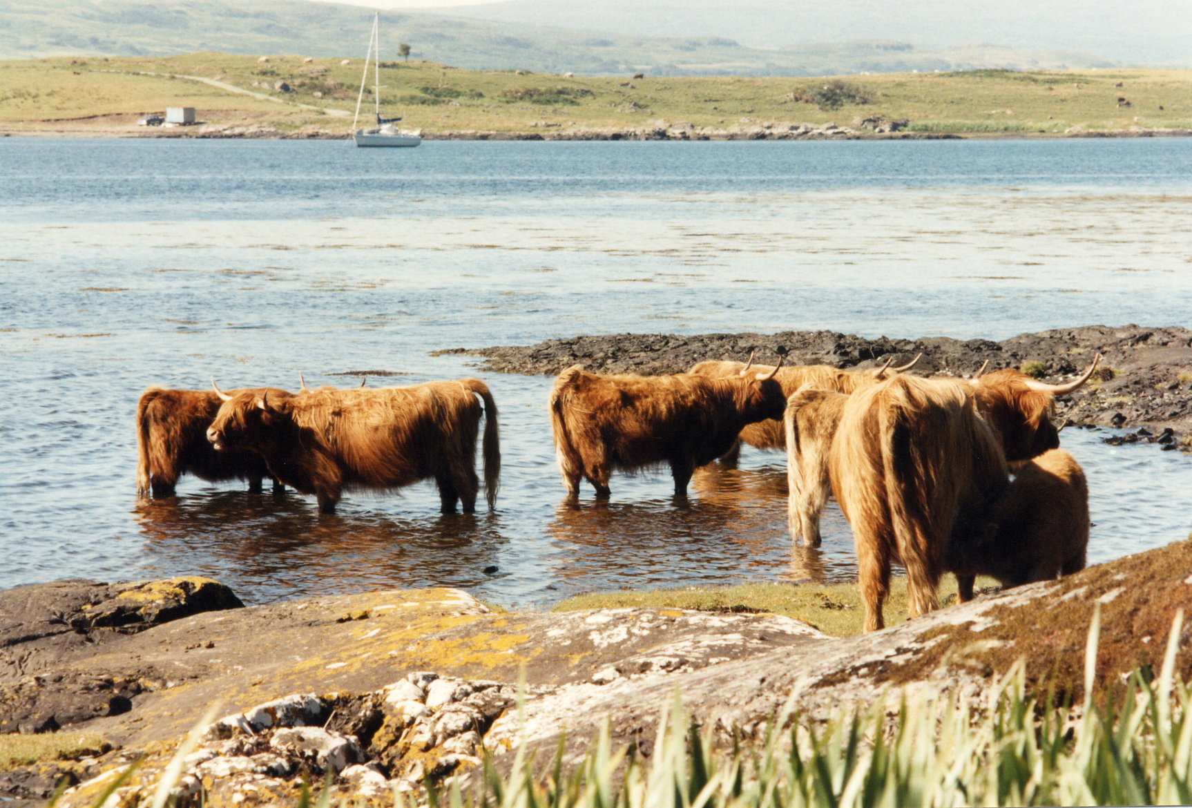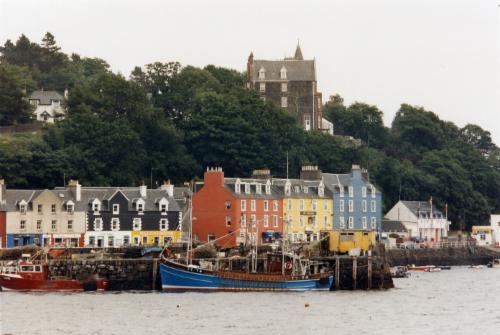 Mittags fahren wir nach Tobermory. Die Häuser hier sind wirklich so bunt, wie man es auf den Postkarten sieht. Wir gehen ein wenig Shopping, kaufen Postkarten, Briefmarken und ergänzen unsere Obst- und Wasservorräte. Hier gibt es auch einen Geldautomaten, und beim Ferry-Terminal reservieren wir sicherheitshalber für morgen Nachmittag einen Platz auf der Fähre von Mallaig nach Skye.
