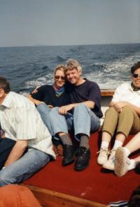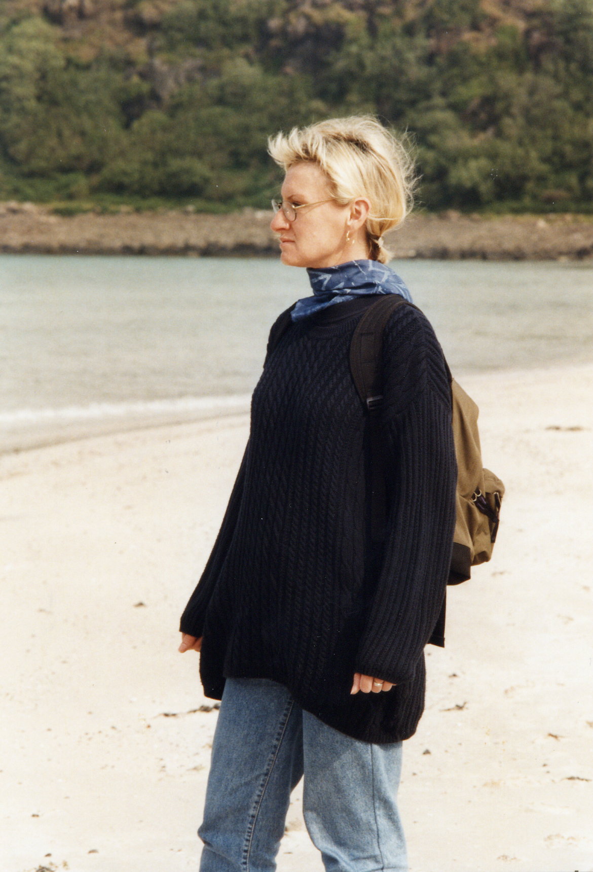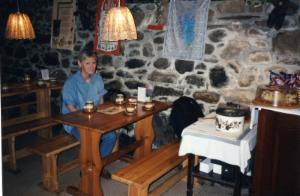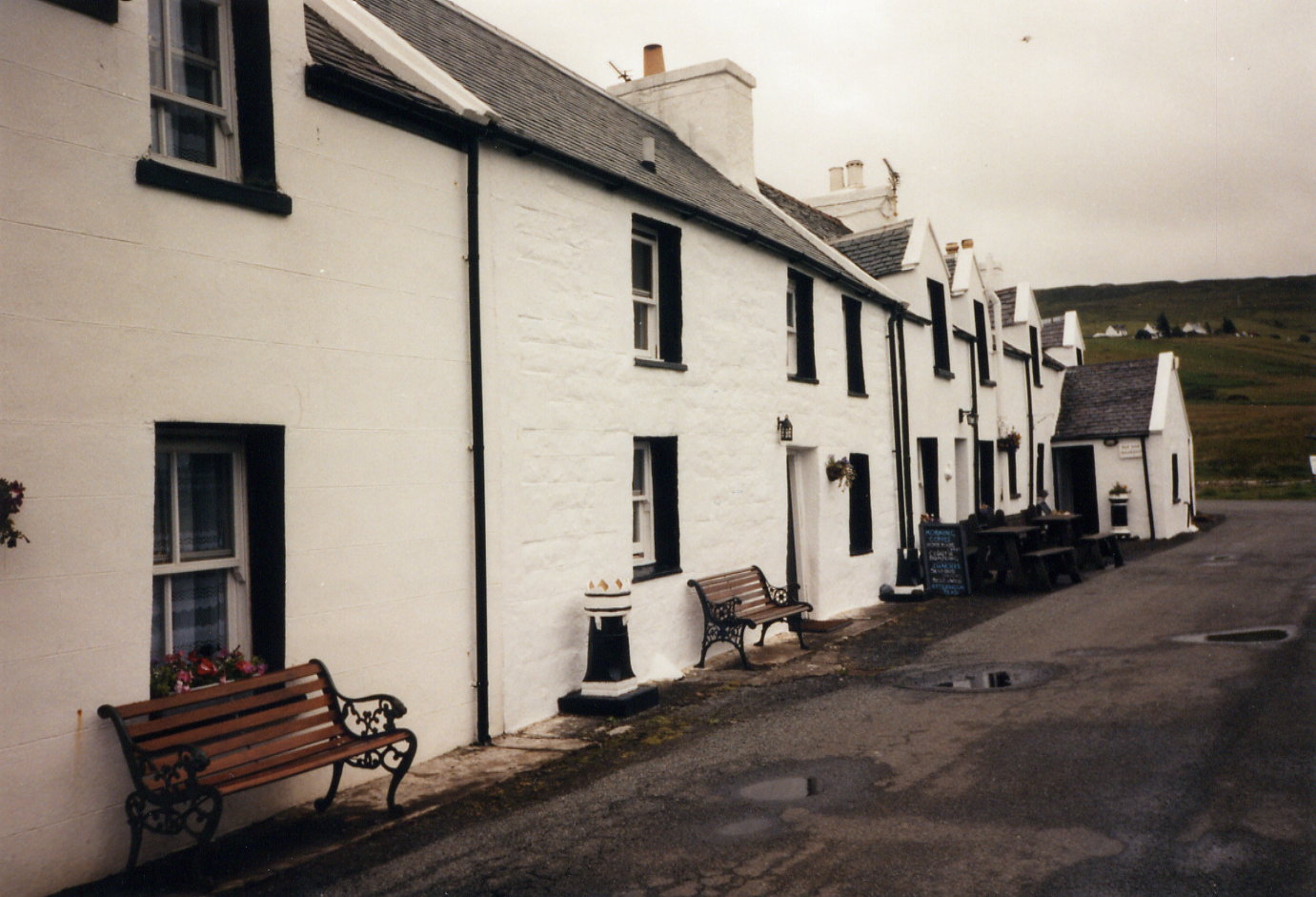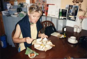 Unterhalten werden wir von vier älteren Damen aus der Gegend von Edinburgh, die schon öfter in dieser Pension waren und mit Jeremy, dem Hausherrn herumschäkern. Wir sind nicht ganz so zufrieden. Der gute Jeremy ist etwas chaotisch. Er verwechselt Bestellungen, und die Rühreier sind zu trocken. Es liegt wohl daran, daß seine Frau nicht da ist; sie ist unterwegs, um die Kinder in ein Ferienlager zu bringen (übrigens auf die Äußeren Hebriden).