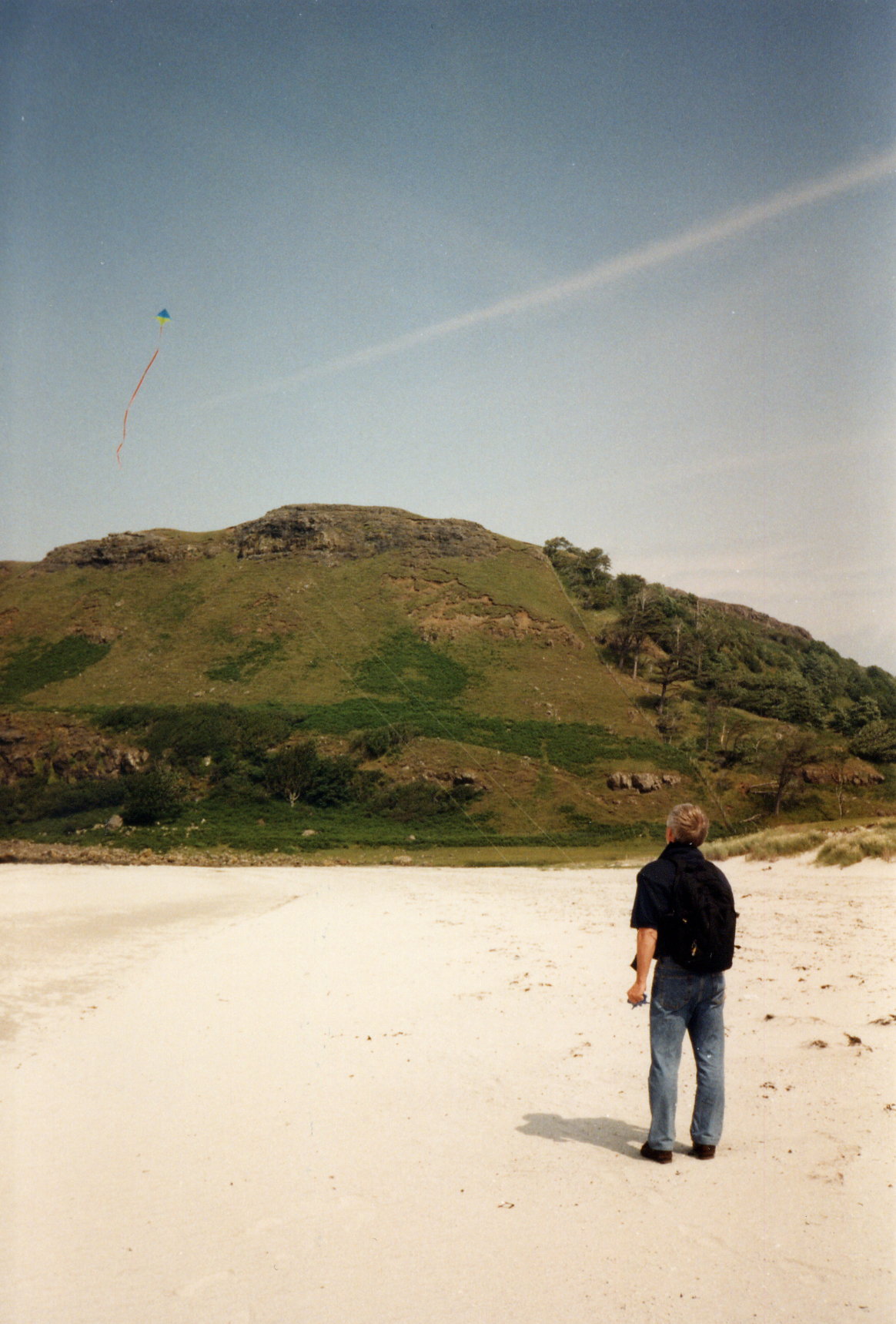 In der Nacht ist ein kalter Wind aufgekommen. Ich habe am offenen Fenster geschlafen und fühle mich etwas erkältet. Am Tag setzt sich die Sonne zwar wieder durch, aber es bleibt windig. Wir laufen an der Calgary Bay entlang und lassen am Strand unseren Drachen steigen.