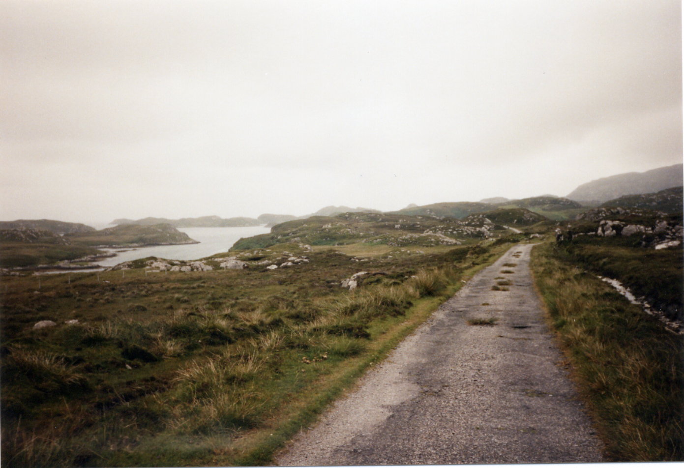 ``Bad roads here'', he said. He had to stop his cranky car in one of the passing places to let the oncoming car pass. For a connoisseur of bad roads like myself this wasn't a major problem. He dropped me a few miles before Benbecula [..]