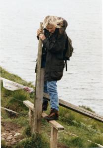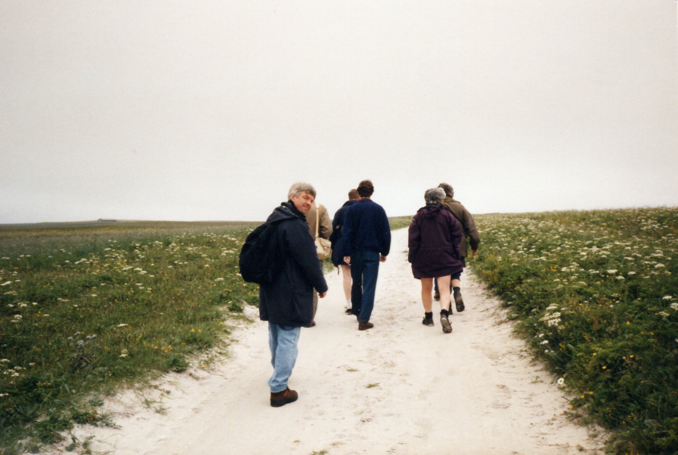 Aber fast noch sehenswerter sind die anderen Mitglieder unserer kleinen Gruppe. Eine Karikatur könnte Vogelkundler nicht besser darstellen. Sie sind natürlich auf einem völlig anderen Level der Vogelbeobachtung als wir. Sie halten Ausschau nach unscheinbaren kleinen braunen Vögeln, von denen es offensichtlich auch noch verschiedene Sorten gibt, und rätseln gemeinsam, ob sie nun ein Männchen oder ein Weibchen im Feldstecher haben. Den Vögeln, die wir interessant finden, Austernfischer z.B. oder Kiebitze, gönnen sie keinen Blick. Trotzdem gewinnen wir einen interessanten Einblick besonders auch in die Fauna dieser Gegend: es gibt unzählige verschiedene Wiesenblumen. Schade, daß wir mit den englische Bezeichnungen nicht so viel anfangen können.