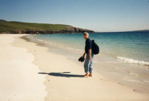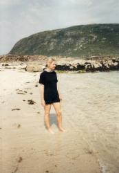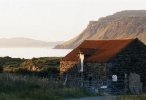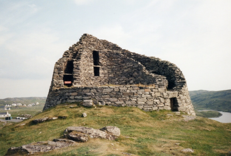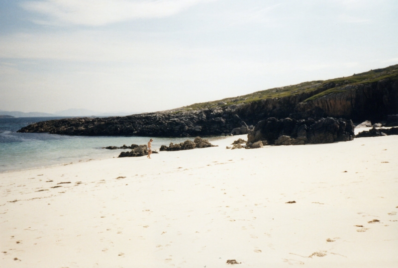 So auch heute wieder: Am Vormittag klappern wir noch zwei Besichtigungspunkte ab, eine alte Wassermühle und ein sogenanntes Blackhouse, ein einzimmriger Bau mit dicken Wänden und abgerundeten Ecken. In solchen Häusern haben die Bauernfamilien bis in die 20'er Jahre unseres Jahrhunderts gelebt. Das, was wir besichtigen, war sogar noch bis 1964 bewohnt. Es hat natürlich kein fließendes Wasser, keinen elektrischen Strom und auch keinen Kamin. Um die Wärme richtig nutzen zu können, brannte in der Küche immer ein Torffeuer. Im Reiseführer steht, die Bewohner lebten besonders im Winter auf einer ständigen Gratwanderung zwischen Lungenentzündung und Rauchvergiftung. Letzteres kann man gut nachvollziehen, denn zur Demonstration für die Besucher brennt auch jetzt das Feuer in der Küche. Ich halte es keine zwei Minuten aus, mir wird sofort schlecht. Hinterher gehen wir erst einmal eine halbe Stunde an den Strand zum Durchpusten. Prospekte, die wir mitgenommen haben, verfolgen uns noch wochenlang mit ihrem Gestank.
