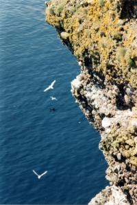 Die wird dann auch ganz interessant, selbst wenn wir nicht viel mehr Vögel zu Gesicht bekommen als gestern, aber immerhin einige Gannets (Basstölpel) und Razorbills (Tordalken).