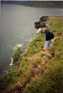 Der Weg, den wir uns ausgesucht haben, ist nicht gerade komfortabel. Er ist äußerst schmal und führt am Klippenhang entlang, so daß man ständig den steilen Abgrund neben sich hat.