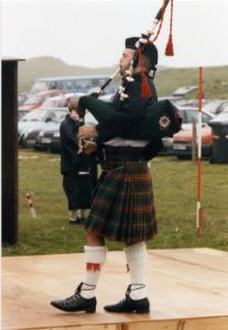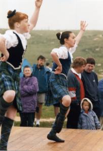 Heute ist ein Besuch der Highlandgames geplant. Pünktlich um 10.00 Uhr fahren wir auf den Festplatz in Hosta, allerdings nur, um zu sehen, daß einige Leute noch sehr mit dem Aufbau beschäftigt sind. Wahrhaftig dauert es noch zwei Stunden, bis die Wettbewerbe langsam mit Tanzen und Dudelsackspielen beginnen.