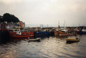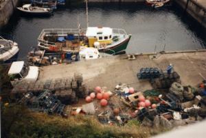 Gut, daß die Samstagsfähre ausgebucht war und wir schon heute nach Ullapool fahren müssen. Denn auch auf den zweiten Blick wird Stornoway, wo wir ursprünglich den heutigen Tag und Abend verbringen wollten, nicht attraktiver. Unser Stadtbummel ist nicht besonders ergiebig. Woolworth scheint noch das Geschäft mit dem höchsten Niveau zu sein. Trotzdem treiben wir uns hier ein Weilchen herum. Der Hafen ist recht interessant. Man kann beobachten, wie die Fischer ihre Netze flicken und alles wieder bereit machen für die Ausfahrt am Abend.