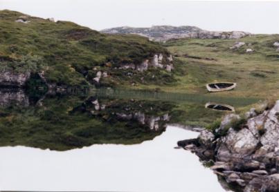 The peat moor is the most singular feature of the landscape in the Isle of Lewis. This thick low vegetation is digging ground for the islanders, who thus make their provisions of winter fuel. Innumerable rectilinear slabs of peat mark the moorland all around the Isle. Occasionally there are peat piles dotted around. The technique is apparently simple: cut the peat in regular flat chunks, place them to dry for a few weeks, go and fetch the dryed peat, and carry it home. Still nowdays the islanders dig unlimited amounts of peat at no cost.