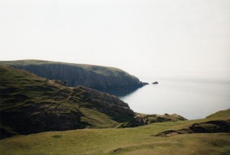 Den Nachmittag verbringen wir einmal mehr mit Vogelbeobachtung auf den Klippen am Butt of Lewis. Wir gelangen sehr nah an die Nester von Fulmars und Kittiwakes heran, so daß wir die Jungen (kleine weiße oder graue Flaumbällchen) fast anfassen können. Viele Nester von Shags sind auch da. Wir kommen wieder voll auf unsere Kosten und entdecken auf jedem Klippenvorsprung neue interessante Dinge. Leider ist heute unser letzter Tag in der freien Natur, und wir kosten ihn noch richtig aus. Obwohl wir uns ja zwischendurch häufiger nach mehr Zivilisation gesehnt haben, fällt uns jetzt der Abschied doch schwer, zumal wir ja auch endlich einmal eine angenehme Unterkunft haben.