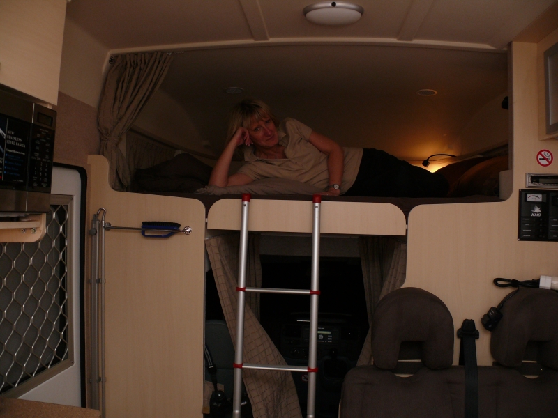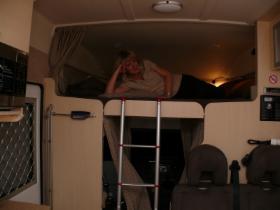 Es dauert noch eine ganze Weile bis wir uns eingerichtet haben und das Bett gebaut ist. Es gibt verschiedene Schlafplätze "an Bord", wir entscheiden uns für den Alkoven über der Fahrerkabine.