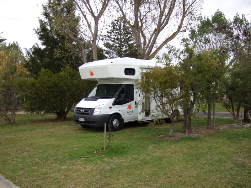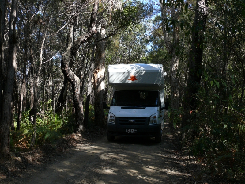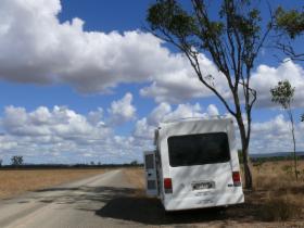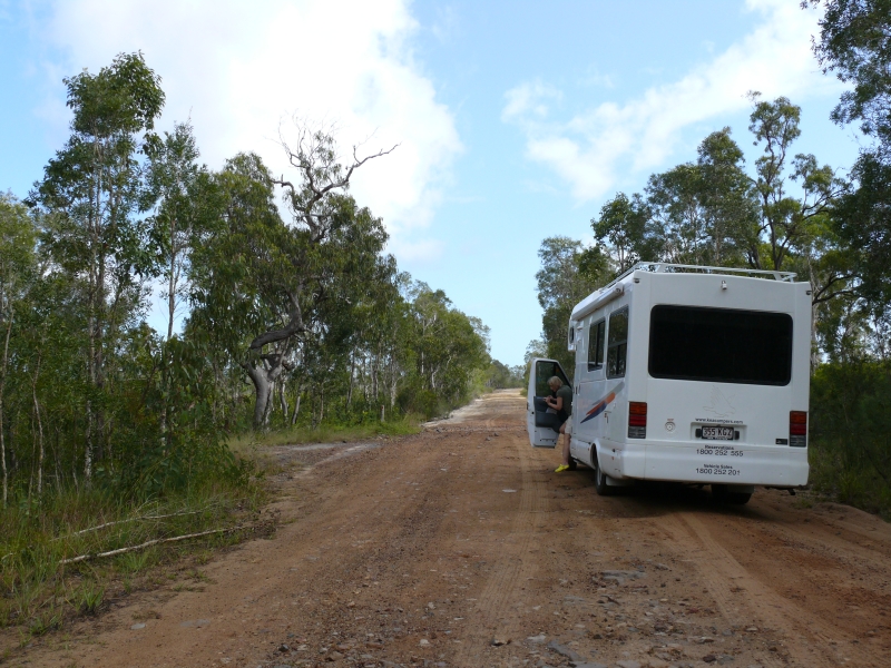 Diese tiefe Dunkelheit trägt sehr zu erholsamer Nachtruhe bei. Wir schlafen durch, bis es hell wird. Das Auto ist leider weiter ausgekühlt. Auch in Australien sind im Spätherbst (das ist schließlich die zurzeit hier herrschende Jahreszeit) die Nächte äußerst kalt. Nur sehr ungern machen wir eine Weile den Motor an, um heizen zu können, und nach Kaffee, Knäckebrot mit Käse und Joghurt mit Müsli sind wir etwas aufgewärmt. Leider müssen wir feststellen, dass es heißes Wasser auch nur mit Außenstrom gibt. Das ist unangenehm, macht es doch das Übernachten außerhalb von Campingplätzen deutlich unkomfortabler. In dem Wohnmobil, das wir in Alaska hatten, wurde dies alles über Gas betrieben, außerdem hatten wir noch einen Generator, so dass wir dort völlig unabhängig irgendwo übernachten konnten. Das geht hier wohl nicht, denn länger als 1-2 Tage möchte ich nur ungern auf eine warme Dusche verzichten. Aber in den nächsten Tagen kommen wir ja in tropische Regionen, vielleicht reicht dann die normale Wassertemperatur zum Duschen.