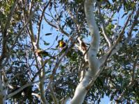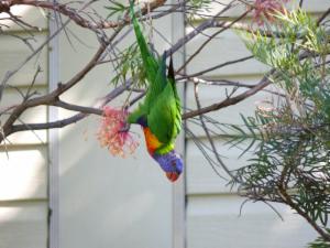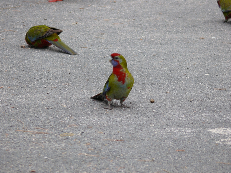 Am Ausgang des Campingplatzes sitzen bunte Sittiche in den Büschen, unser erster Kontakt mit der schillernden australischen Tierwelt.