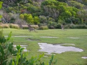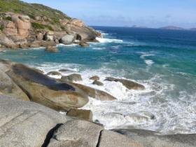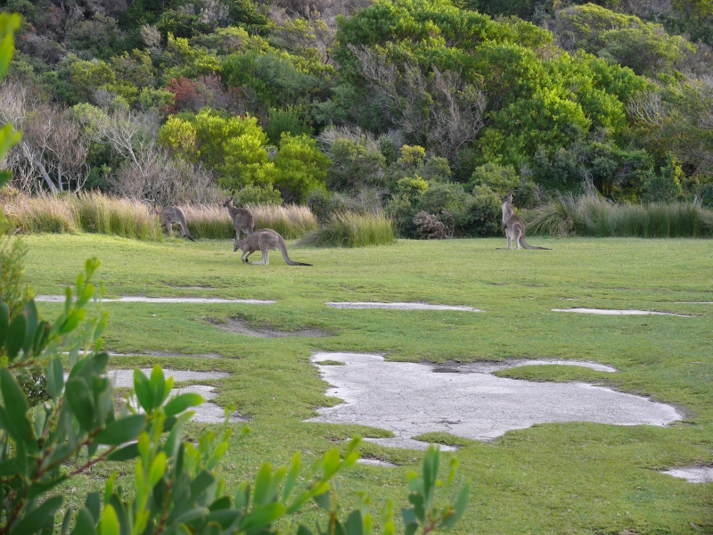 Heute ist ein entspannender Tag im Wilson’s Promontory National Park (The Prom) angesagt, einer Halbinsel südöstlich von Melbourne, die den südlichsten Punkt des australischen Festlandes bildet. Der Nationalpark umfasst Buschland, Regenwald und Küste mit schönen Stränden. In ihm sind zahlreiche Tierarten beheimatet, so das Graue Riesenkänguru, Emus, Wombats, Possums, Ameisenigel und Koalas, ganz abgesehen von den vielen Vogelarten.