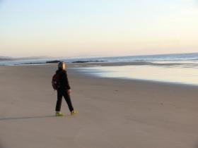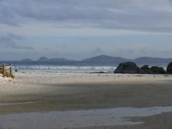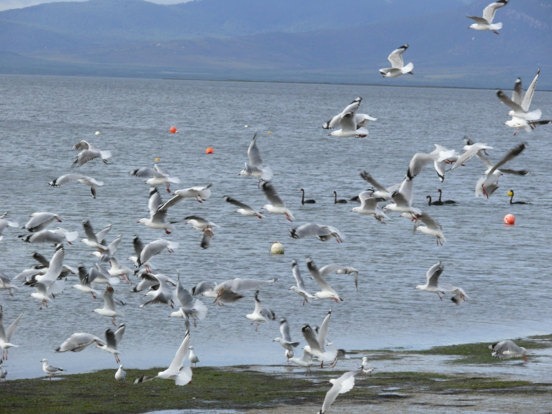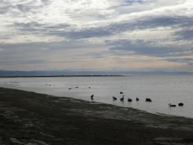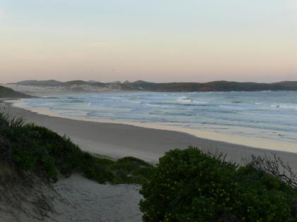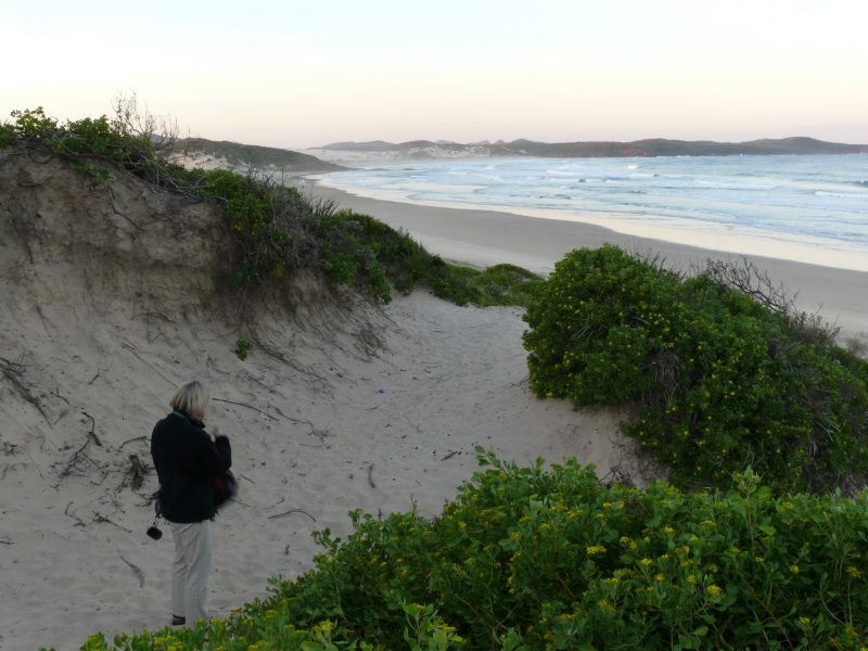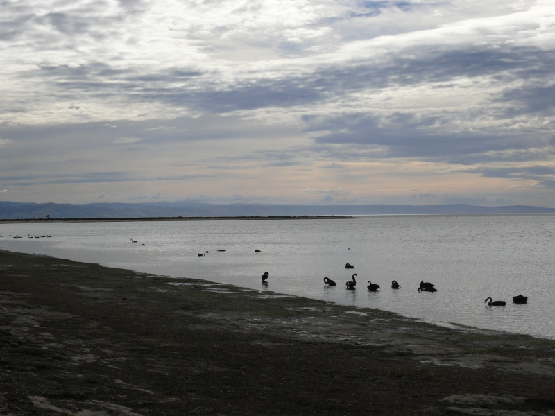 Beim Aufwachen stellen wir fest, dass wir ganz nah am Meer sind. Wir hätten gestern gut noch einen Spaziergang machen können. Aber zuerst haben wir nicht daran gedacht, und später hat es geregnet. So muss dann heute früh ein kurzer Blick auf den Strand reichen, an dem sich viele schwarze Schwäne tummeln. (Die hätten wir gestern Abend in der Dunkelheit wohl sowieso nicht gesehen!)