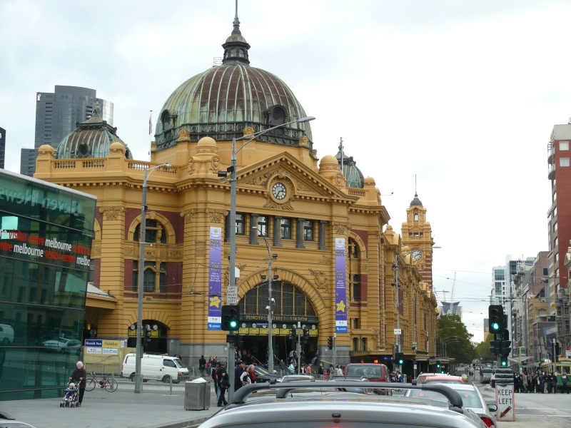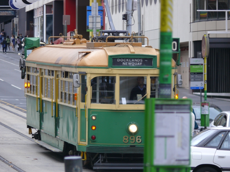 In Melbourne machen wir eine "selbstorganisierte" Stadtrundfahrt im eigenen Auto – nach dem Motto: Entweder man nimmt sich richtig Zeit für die Stadt (das würde mindestens zwei bis drei Tage dauern) oder man lässt es ganz bzw. begnügt sich mit einem schnellen Überblick aus dem Auto heraus. Nebenbei kann Ulrich hier auch noch einmal ganz intensiv das Schalten üben! Aber er bleibt ganz cool, auch angesichts äußerst exotischer Verkehrsregeln: