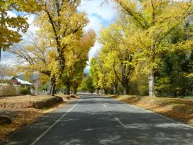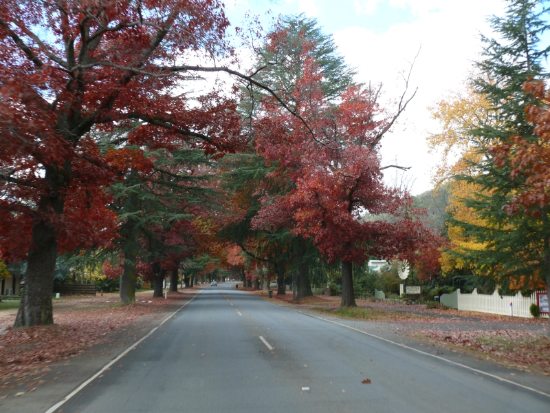Heute Nacht hat es wieder geregnet, aber netterweise klart es am Morgen schnell auf. Hier ist alles bereits sehr herbstlich, viele Blätter sind schon herabgefallen, die restlichen leuchten wunderschön in allen Gelb- und Rottönen. In Bright, bekannt für seine vielen verschiedenen Bäume mit eindrucksvoll gefärbtem Herbstlaub, findet gerade das Bright Autumn Festival statt – Indian Summer in Australien!