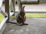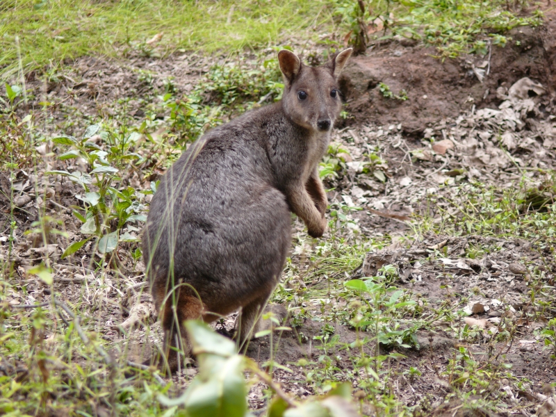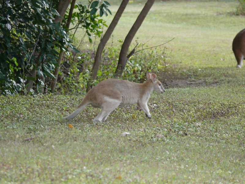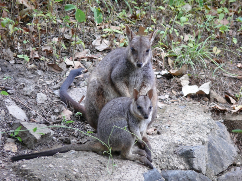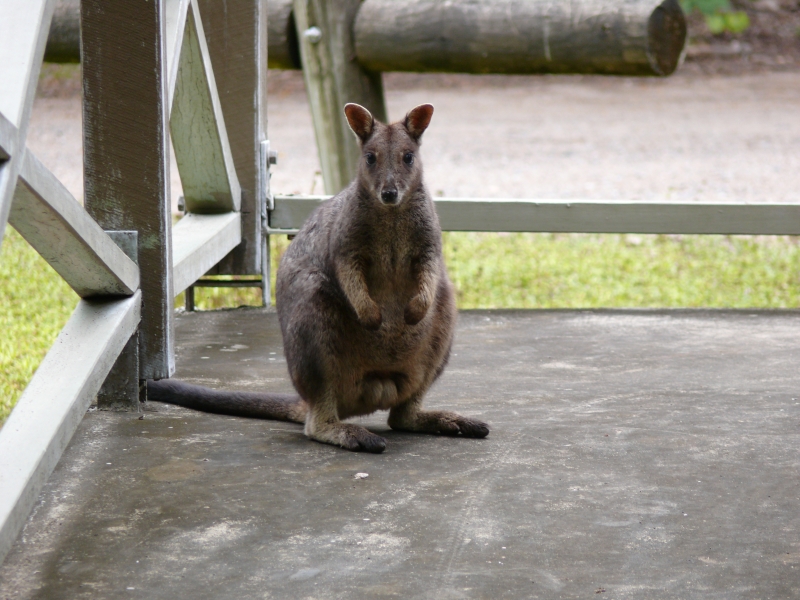 Am Alligator Creek im Bowling Green National Park legen wir einen Lunchstopp ein. Leider müssen wir uns mit dem Essen wieder ins Auto verziehen, nachdem unser Picknicktisch systematisch von diesen hässlichen Putern eingekreist wird. Zum Ausgleich sind aber auch kleine Beuteltiere da, sie hüpfen an den Wegen entlang und sind äußerst niedlich.