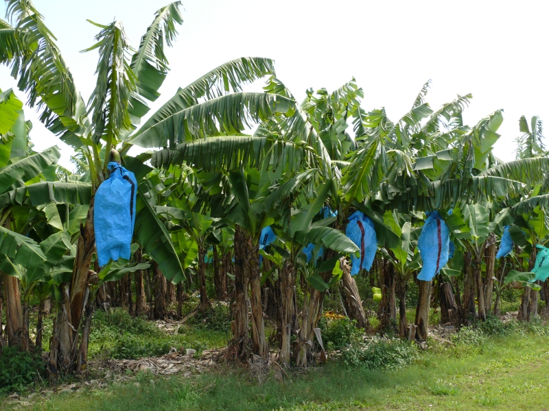 Später tauchen große Bananenplantagen auf. Die Früchte sind zum Schutz gegen was auch immer in bunte Tüten eingepackt. Es sieht aus, als würden sie gleich supermarkttauglich wachsen. Nördlich von Innisfail ragt auch der Regenwald ab und an bis an den Highway heran.