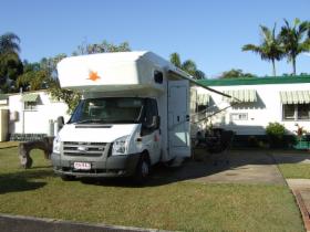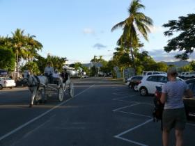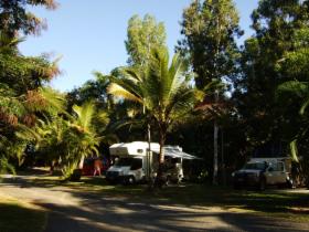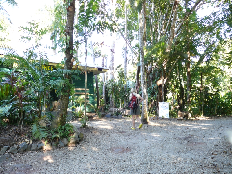 In Port Douglas stehen drei Campingplätze zur Auswahl. Zwei sind nahe dem Zentrum, aber nicht besonders schön, also entscheiden wir uns für den dritten, mal wieder einen Big4. Wir suchen nicht gezielt nach diesen Plätzen, aber Big4 ist eine große Kette und bietet guten Standard. Dieser hier, Glengarry, befindet sich zwar einige Kilometer außerhalb des Ortes, ist aber sehr schön angelegt mit großzügigen Stellplätzen. An der Palme hinter unserem Auto ranken Philodendren und Monstera empor, wie zu Hause im Wohnzimmer. Sogar den Ausflug für morgen können wir hier buchen, und abgeholt werden wir auch. Was will man mehr?