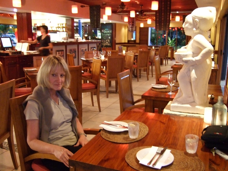 Es ist ziemlich heiß und wir gehen langsam Richtung Hotel. So verlockend ist Cairns auch nicht, und nach Shopping ist uns nicht zumute. Wir verbringen den Nachmittag im Hotel, das sehr schön und angenehm ist. Auch zum Abendessen gehen wir nicht in den Ort, sondern essen Balinesische Reistafel im Hotelrestaurant – nicht gerade typisch australisch, aber ausgesprochen gut.