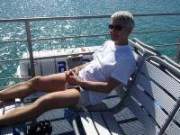 Die Versorgung zwischen den Stopps ist ausgezeichnet, das Lunchbuffet ist gut bestückt und der Kuchen am Nachmittag sehr gut. Dazu Meer, Sonne, blauer Himmel – ein fast perfekter Tag. Allerdings ist es hier draußen – wohl nicht zuletzt aufgrund des starken Windes – doch deutlich kälter als wir erwartet hatten. Beim dritten Stopp geht darum auch Ulrich nicht mehr ins Wasser.