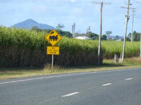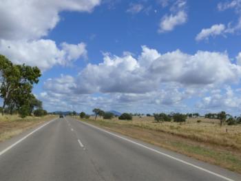 Weiter nördlich führt der Bruce Highway durch offenes Buschland mit niedrigem Baumbestand. In einer breiten Schneise führen Straße und Eisenbahnschienen hindurch. Es sieht wild und unkultiviert aus, ist aber eingezäunt, und wenn man genau hinschaut, sieht man vereinzelt auch Rinder. In der Nähe von Ayr tauchen dann wieder Zuckerrohrfelder auf.