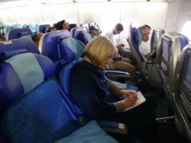 Um 21.30 Uhr sind wir wieder an unserem Hotel, von wo uns der Shuttlebus abholt. Wir sind pünktlich am Flughafen, und mit leichter Verspätung startet gegen 0.30 Uhr unsere Maschine nach London. Es ist ein reiner Nachtflug, wir kommen morgens um 6.30 Uhr Ortszeit in Heathrow an, zweieinhalb Stunden später fliegen wir weiter nach Berlin.