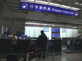 Leider rollt dann – wie fast befürchtet – nur eine von unseren beiden Taschen über das Gepäckband. Tröstlich zu wissen, dass das schon eine recht gute Quote ist. Direkt nach Eröffnung des Terminal 5 in Heathrow kamen Maschinen aus London völlig ohne Gepäck in Hongkong an, erzählt uns der Angestellte von Cathay Pacific, für den das alles Routine ist. Wir haben dann aber doch noch Glück. Die Suchmeldung, die gleich abgegeben wird, hat Erfolg, und als wir gerade gehen wollen, kommt die Nachricht, dass unsere Tasche gefunden wurde. Der Gepäckanhänger der Fluggesellschaft war abgegangen, deswegen konnte sie zunächst nicht zugeordnet werden.
