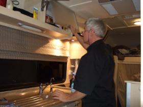 Aber dann haben wir es geschafft und sitzen im Wohnmobil, unserem Zuhause für die nächsten drei Wochen. Weit fahren werden wir heute nicht mehr. Es schon 7.00 Uhr abends und wir haben noch nichts ausgepackt. Also ist unser erstes Etappenziel ein Caravanpark im Süden der Stadt – eng und teuer, nun ja. Unser Stromkabel hat einen Wackelkontakt, aber irgendwann klappt es doch und wir können die Heizung anmachen. Sie funktioniert leider nur mit Außenstrom und es ist doch ziemlich kalt geworden. Mit der Ausstattung des Autos sind wir ansonsten sehr zufrieden. Bettwäsche, Handtücher, Geschirr, etc. machen einen sehr guten Eindruck. Auch die Küche ist "hochwertiger" ausgestattet als in unserem Wohnmobil in Alaska.