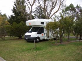 Entsprechend gespannt fahren wir am Morgen los. Wir haben gut geschlafen, und langsam gewöhnen wir uns an die Annehmlichkeiten eines Campingplatzes, was insbesondere die ausgiebige warme Dusche meint, die wir uns "daheim" im Caravan aufgrund des beschränkten Wasservorrates ja nicht gönnen können. Der Platz, auf dem wir waren, war auch sehr gepflegt und großzügig - anders als der in Sydney, und dabei nur halb so teuer. Zudem hat man bei der so früh einsetzenden Dunkelheit ja auch nur wenig von Übernachtungen in der Natur, wenn man seine Umgebung nicht mehr sehen kann.