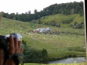 Zurück auf dem Hume Highway geht es weiter Richtung Nordosten. Unser nächstes Ziel sind die Blue Mountains in der Nähe von Sydney. Das bedeutet 550 km überwiegend langweiliger Highway. Die Gegend ist leicht hügelig und durchweg Kulturlandschaft. Es wirkt mehr und mehr südlich hier - so würde man in Europa sagen. In Australien muss es wohl eher heißen: Es wirkt mehr und mehr nördlich hier. Die Weiden werden etwas trockner als weiter im Süden und in den Bergen. Die Landschaftsfarbe wechselt von sattem Grün zu ausgebleichtem Gelb-Grün. Unter die Rinder mischen sich langsam auch größere Schafherden, sonst gibt es keine auffälligen Veränderungen.