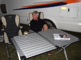 Gegen 18.30 Uhr sind wir zurück und richten unseren Picknicktisch ein. Rundherum ist bereits Ruhe eingekehrt, Zelte und Wohnwagen sind zu. Auf den Campingplätzen hier gibt es keine Lagerfeuerromantik und keine Parties. Mit hereinbrechender Dunkelheit werden die Bürgersteige hochgeklappt, in manchen Caravans hört man einen Fernseher. Unser Nachbar lässt ihn offensichtlich die ganze Nacht laufen. Solche "Lärmbelästigung" ist aber eine absolute Ausnahme. Ich kann mich noch mit meinem Blog beschäftigen, auch hier gibt es drahtlosen Internetzugang.