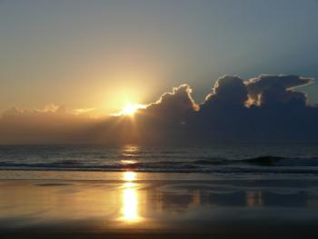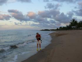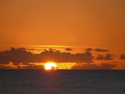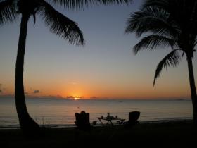 Zum Sonnenaufgang sitzen wir wieder zwischen den Palmen. Wir müssen etwas Geduld haben, vor 6.30 Uhr lässt sie sich hier nicht blicken.