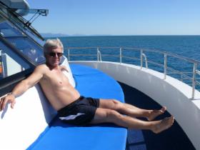 Auf dem Rückweg gibt es noch einen informativen Vortrag über das Riff und dessen Flora und Fauna. Währenddessen werden die Unterwasserfotos, die Ulrich gemacht hat, für uns auf eine CD gebrannt.