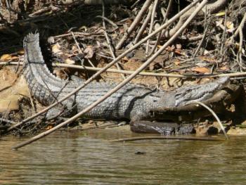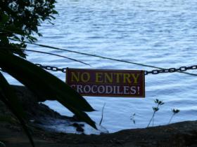 Am Daintree River können wir im Rahmen einer Bootstour mit dem River Train einige von ihnen beobachten. Dieser River Train ist schon reichlich abartig, aber für die exclusiveren Touren mit kleinen Booten sind wir zu spät, so dass dies die einzige Chance ist, überhaupt auf den Fluss hinaus zu fahren. Und Krokodile bekommen wir zu Gesicht – das ist die Hauptsache!