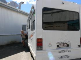 Die KEA-Station macht einen sehr gepflegten Eindruck und wir bekommen eine kompetente Beratung und Einweisung – nur ist leider unser Auto nicht fertig! Es befindet sich beim Check in der Werkstatt nebenan, und es dauert noch ca. 30 Minuten, lautet die Auskunft um 10.30 Uhr. Zwei Stunden später sind die 30 Minuten immer noch nicht herum. Der KEA-Angestellte war schon mehrmals in der Werkstatt und kam jedes Mal mit der Nachricht zurück, dass es nur noch wenige Minuten dauert. Es ist ihm sichtlich peinlich, und zwischendurch schenkt er uns schon einmal einen Bildband über Australien. Auf mein Drängen hin bekommen wir dann einen VW-Bus, mit dem wir einkaufen können, statt hier nutzlos herumzustehen und zu warten. Darüber hinaus gibt es noch 100 $ Zuschuss zum Einkauf von KEA als Entschuldigung. Der einzige Supermarkt in der Nähe ist – man glaubt es kaum – ein ALDI. Das spart Zeit, denn die Aufteilung des Ladens ist ähnlich wie in Deutschland, und auch viele Produkte sind uns bekannt. Globalisierung aller Orten!