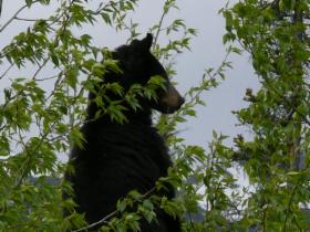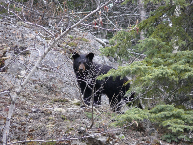 Aber kurz hinter dem White River taucht dann ein Bär am Straßenrand auf und stellt sich bereitwillig dem Fotoshooting.