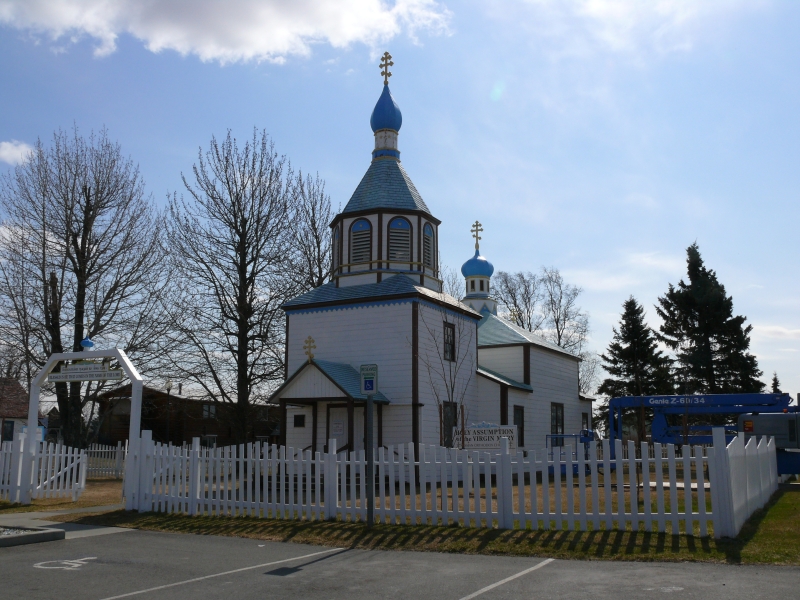 Über Soldotna fahren wir nun zunächst nach Kenai, einer ursprünglich von orthodoxen Russen gegründeten Ortschaft. Ein paar der alten Häuser stehen noch, und in der Basilika finden weiterhin Gottesdienste statt.
