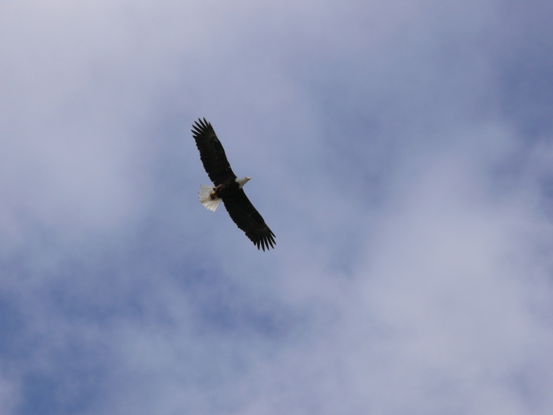 Am Himmel kreisen Weißkopfseeadler, und Flugzeuge fliegen ganz niedrig über unsere Köpfe, um in Kenai zu landen.