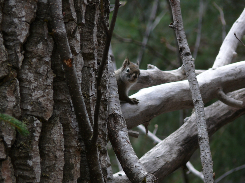 Überall finden wir die Hinterlassenschaften von Elchen (moose nuggets), aber die Tiere selbst lassen sich nicht blicken - warum sollten sie auch? Nur einige Hörnchen schauen uns neugierig an und stoßen dabei schrille Schreie aus.