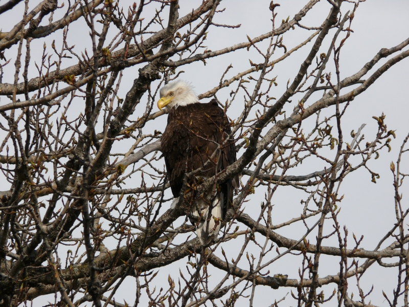 Der Weißkopfseeadler auf dem Baum gegenüber bleibt trotz des Fotoshootings ganz gelassen.