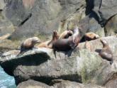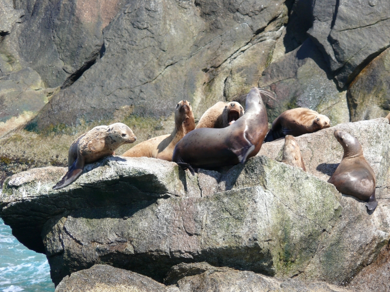 Die Fahrt wird von einem Ranger begleitet, der sehr sachkundig, interessant und einfühlsam erläutert. Wir spüren deutlich seine Liebe zur Natur und seine Begeisterung für die Umgebung. Er schafft es auch, bei den Fahrgästen Verständnis für die ursprünglichen, natürlichen Zusammenhänge zu erwecken. Es macht richtig Spaß, ihm zuzuhören. Immer wieder weist er uns auf Sehenswertes hin, ungewöhnliche Felsformationen, ins Meer verlaufende Gletscherzungen oder aber auf die vielen Tiere, die es hier gibt. Am Ufer entdecken wir Bergziegen, Schwarzbären und ein Adlernest. Auf dem Meer tummeln sich verschiedene Wale, Seelöwen und viele Seevögel. Und das alles auf einer tiefblauen Wasseroberfläche! Wir können uns gar nicht sattsehen.