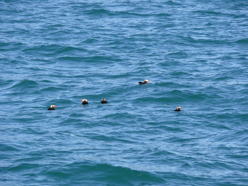Ein Stück unseres Weges begleiten uns fünf oder sechs Dall Purpoises (Schweinswale), und sie scheinen großen Spaß daran zu haben, mit dem Boot um die Wette zu schwimmen. Erst nach längerer Zeit drehen sie ab. Einige weitere Orcas tauchen auch noch auf, bevor die Kenai Star wieder Kurs auf Seward nimmt.