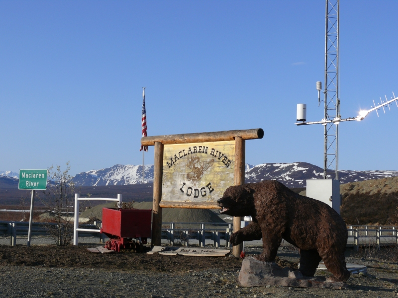 Am Denali Highway leben nicht viele Menschen, aber etwa auf der Hälfte der Strecke gibt es eine nette Lodge. Sie wird von zwei Frauen betrieben, eine aus Virginia und die andere aus Maine. Sie bleiben das ganze Jahr über hier in der Einsamkeit. Weil die Straße im Winter nicht geräumt wird, haben sie einen eigenen Schneepflug. Wir trinken einen Becher Kaffee und essen selbst gebackenen Blaubeerkuchen.