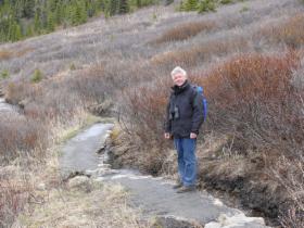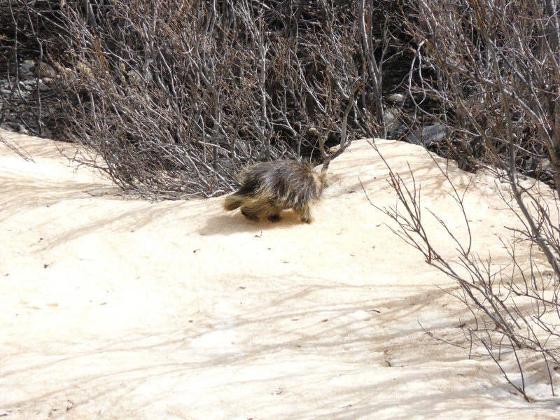 Nachdem Ulrich das Begrüßungsmurmeltier ausgiebig fotografiert hat, machen wir eine kleine Wanderung. Überall ist zu beobachten, wie der Frühling sich langsam gegen Eis und Schnee durchsetzt.