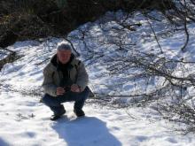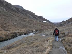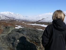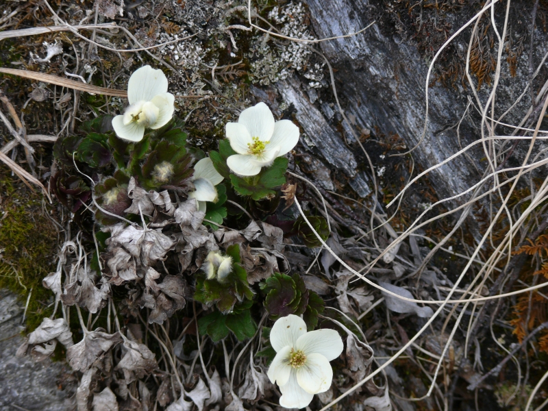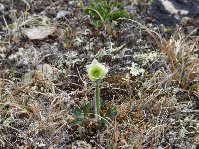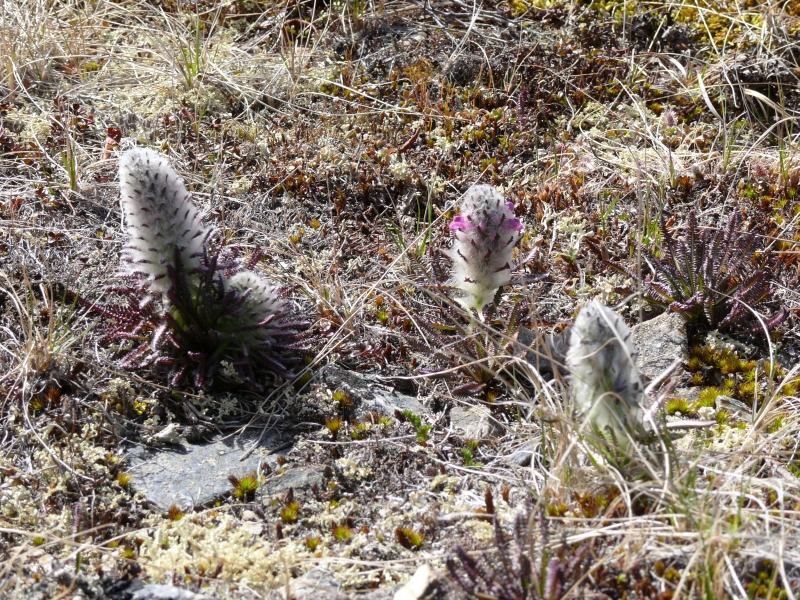Einige Flechten blühen schon, aber sie bleiben sehr klein. Die Vegetation hier entspricht dem, was wir in Europa erst bei weit über 2000 m Höhe finden. An vielen Stellen liegt noch Schnee, und irgendwann ist der Weg durch eine so hohe Schicht blockiert, dass wir umkehren müssen.