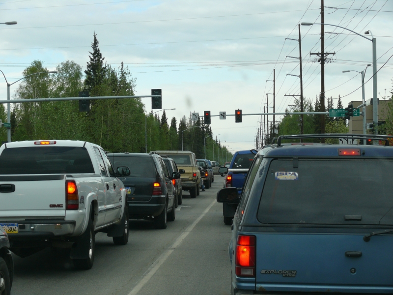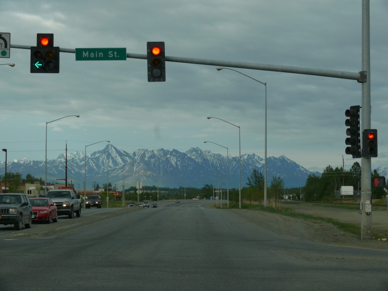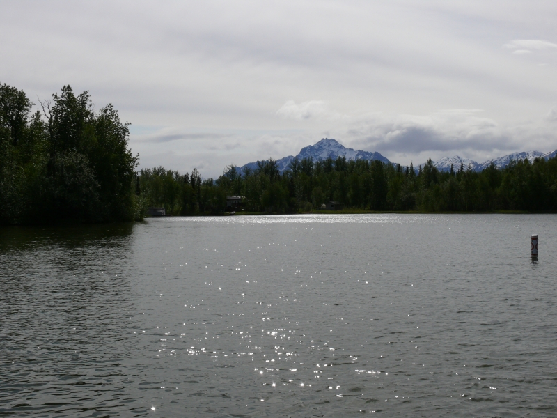 Tok Cutoff und Glenn Highway bieten anfangs noch einmal schöne Ausblicke auf die Wrangell und die Chugach Mountains, aber je mehr man sich Anchorage nähert, umso erschlossener ist die Gegend. Es tauchen immer mehr Ferienhäuser und Lodges auf, und langsam müssen wir uns verabschieden von der Unberührtheit der Landschaft und der Einsamkeit, die unseren Aufenthalt in Alaska so faszinierend gemacht haben. Natürlich ist die Bebauung noch lange nicht mit Europa zu vergleichen. Die Häuser stehen nicht etwa in Sichtweite zueinander, das wäre zu dicht. Sie sind gut gegeneinander abgeschottet und liegen weitab der Straße. Oftmals verrät nur der Briefkasten vorn, dass hier jemand wohnt. Und auch immer noch sieht man mehr Flug- als Parkplätze!