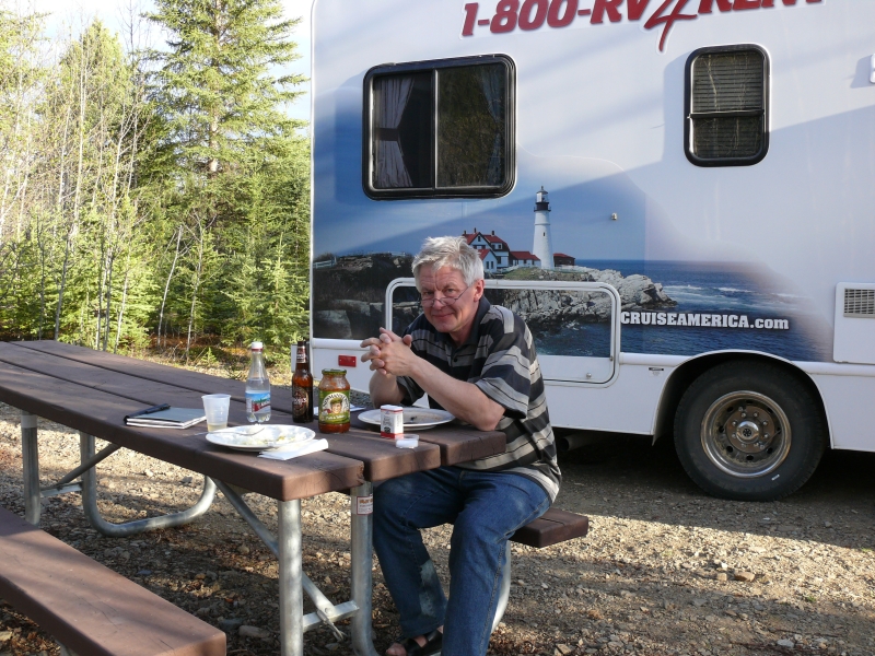 Weil ich aber trotzdem schauen möchte, ob es nicht einen noch schöneren Platz gibt, fahren wir einmal über den Campingplatz - und Ulrich erwischt beim Hinausfahren einen Baum mit der hinteren Stoßstange. Sie hat jetzt eine deutliche Beule, und der Ärger darüber drückt ein wenig auf die gute Laune - zumal wir dann doch wieder auf den Picknickplatz zurückfahren :-))
