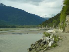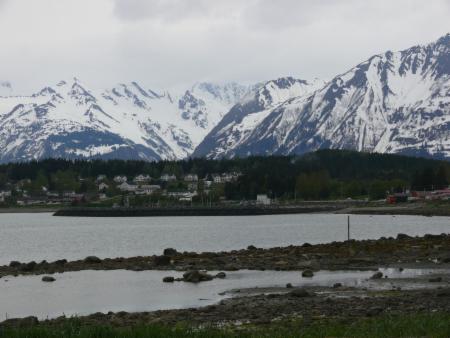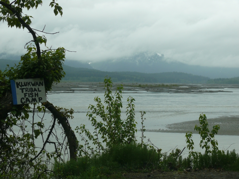 Die Überfahrt nach Haines dauert nur eine Stunde durch den fjordähnlichen Lynn Canal. Haines ist schön zwischen hohen Bergen gelegen, bietet aber ansonsten nichts Aufregendes. Nachdem wir unsere Vorräte im Lebensmittelmarkt am Ort ergänzt haben, fahren wir die Haines Road Richtung Haines Junction, wo wir dann wieder auf den Alaska-Highway einbiegen werden. Wir finden einen Übernachtungsplatz mit Blick auf die Flats des Chilkat Rivers. Hier tummeln sich in jedem Winter zwischen Oktober und Januar ca. 3000 Weißkopfseeadler, um sich auf die hier laichenden Chum-Lachse zu stürzen. Jetzt ist kaum noch einer da, trotzdem ist der Platz wunderschön.