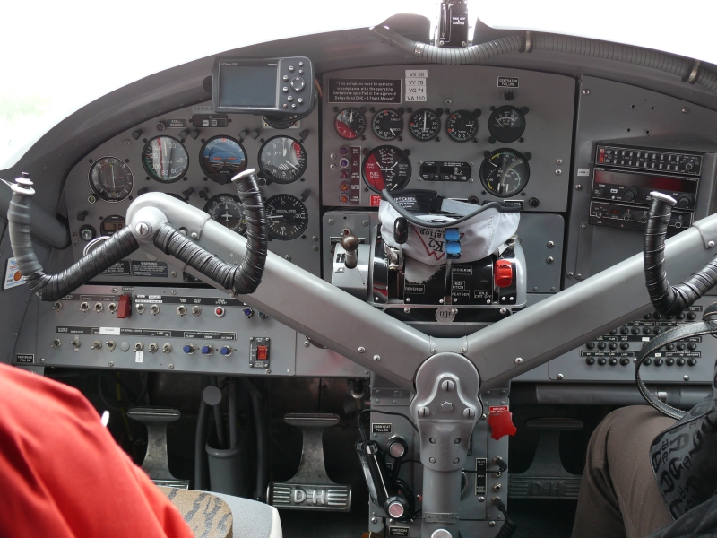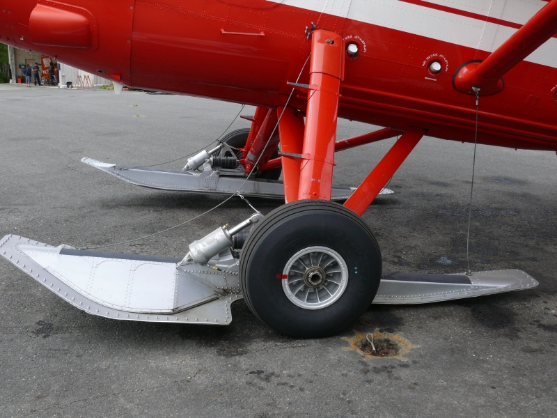 Wir fliegen mit einer de Havilland Turbo Beaver III. Außer uns sind noch sieben andere Leute an Bord. Jeder hat einen Fensterplatz und bekommt Kopfhörer mit Mikrofon zur Kommunikation mit dem Piloten. Alle Flugzeuge verfügen natürlich auch über Kufen, um auf Schnee und Eis landen zu können.